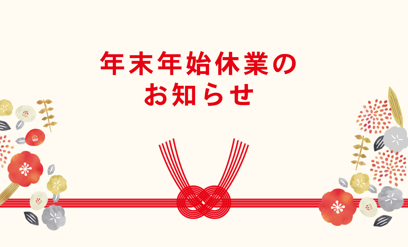 平素は格別のお引き立てを賜り、誠にありがとうございます。誠に勝手ながら年末年始の期間中、弊社は下記の通り休業とさせて頂きますので、何卒よろしくお願い申し上げます。 2025年12月27日(土)~2026年 1月4日(日)